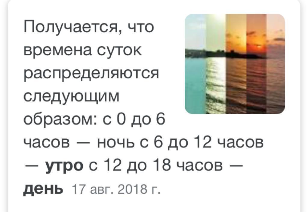 Задача странная. С 0 до 6 часов считается ночь, с 6 до 12 часов утро, с 12 до 18 часов день и остальное вечер ( данные из интернета).