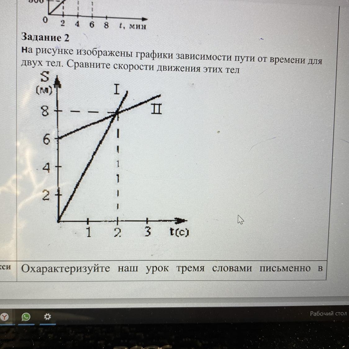 На рисунке изображены графики зависимости пути от времени для двух тел.Сравните скорости движения этих тел
