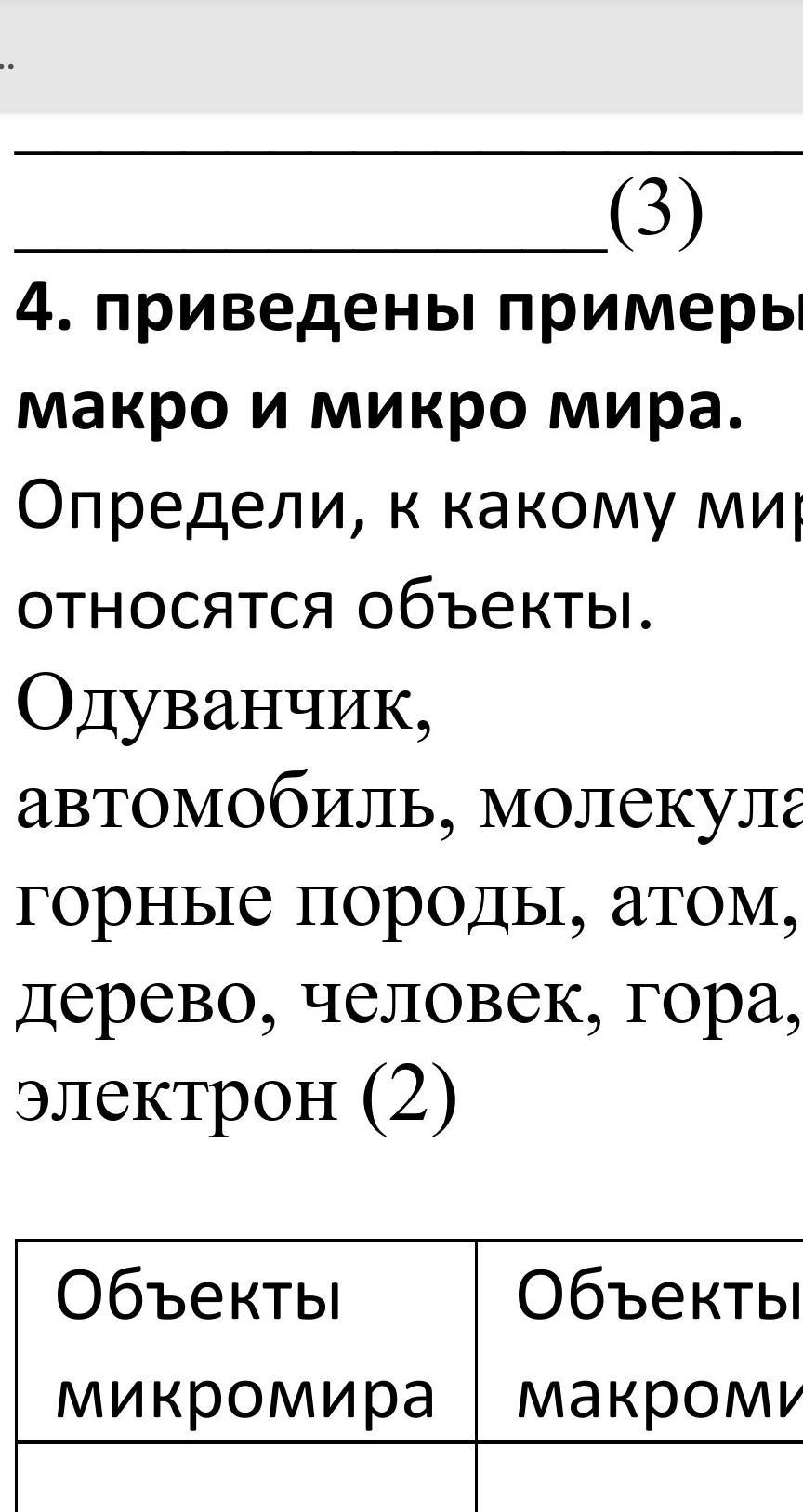 Объекты макромира: горные породы, молекула, атом, электрон (2)