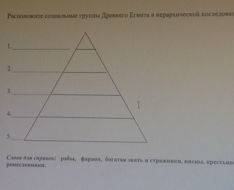 Слова для справок: рабы, фараон, богатая знать и стражники, писцы, крестьяне и
