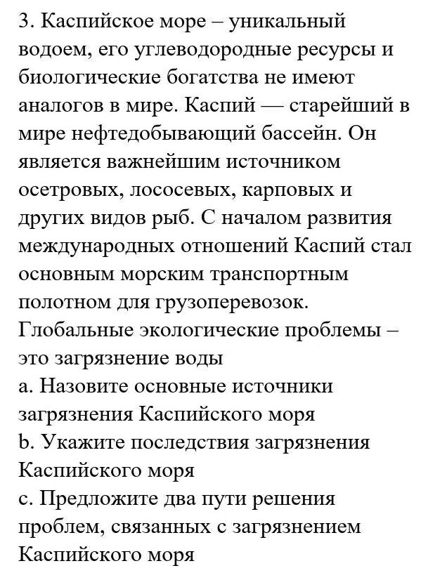 а. причины загрязнения Каспийского моря свидетельствует о том что, люди бросающие мусор в реку, или возле реки, не задумываются о последствиях.