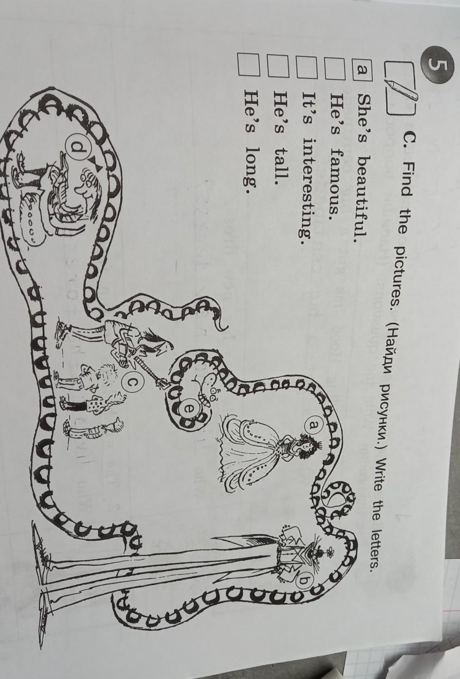 C. Find the pictures. (Hañan pucynku.) Write the letters.