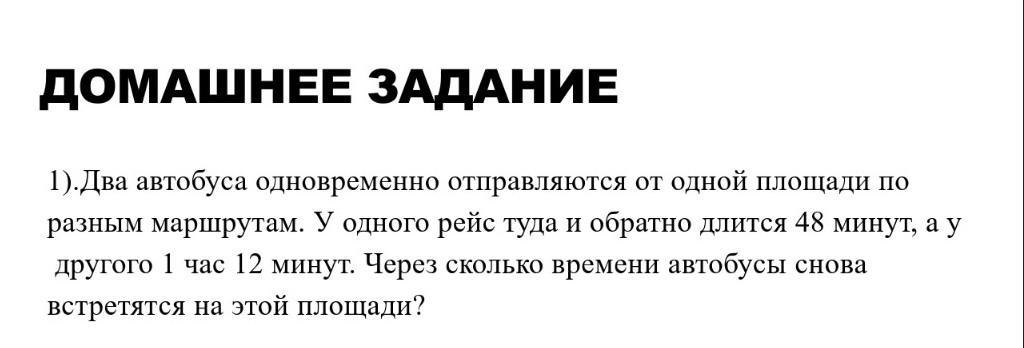 Чтобы автобусы встретились, по сути необходимо найти общее чило которое делилось на 48 и 72.