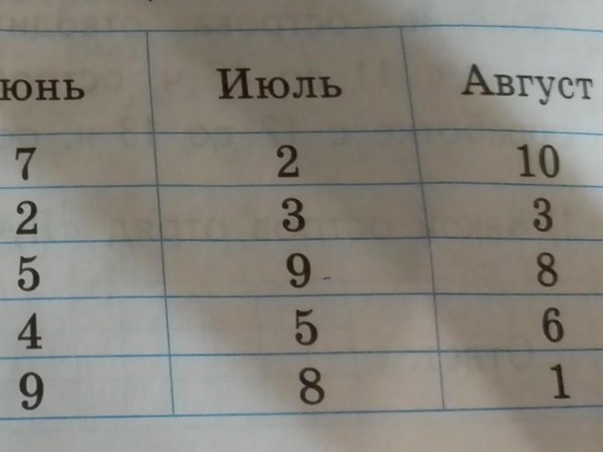 Петя набрал 2 победы за июнь. Авнустина за все время набрала 22 победы тоесть-5+9+8.а Петя если там имена не по порядку то второй столбик