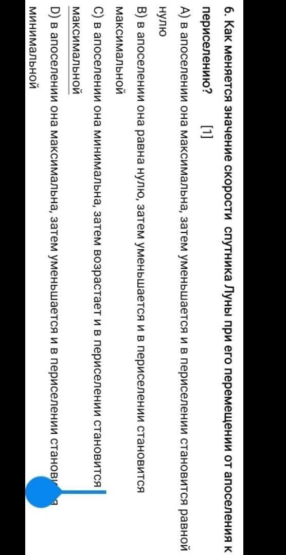 А) в апоселении она максимальна, затем уменьшается и в периселении становится равной нулю В) в апоселении она равна нулю, затем уменьшается и в периселении становится максимальной