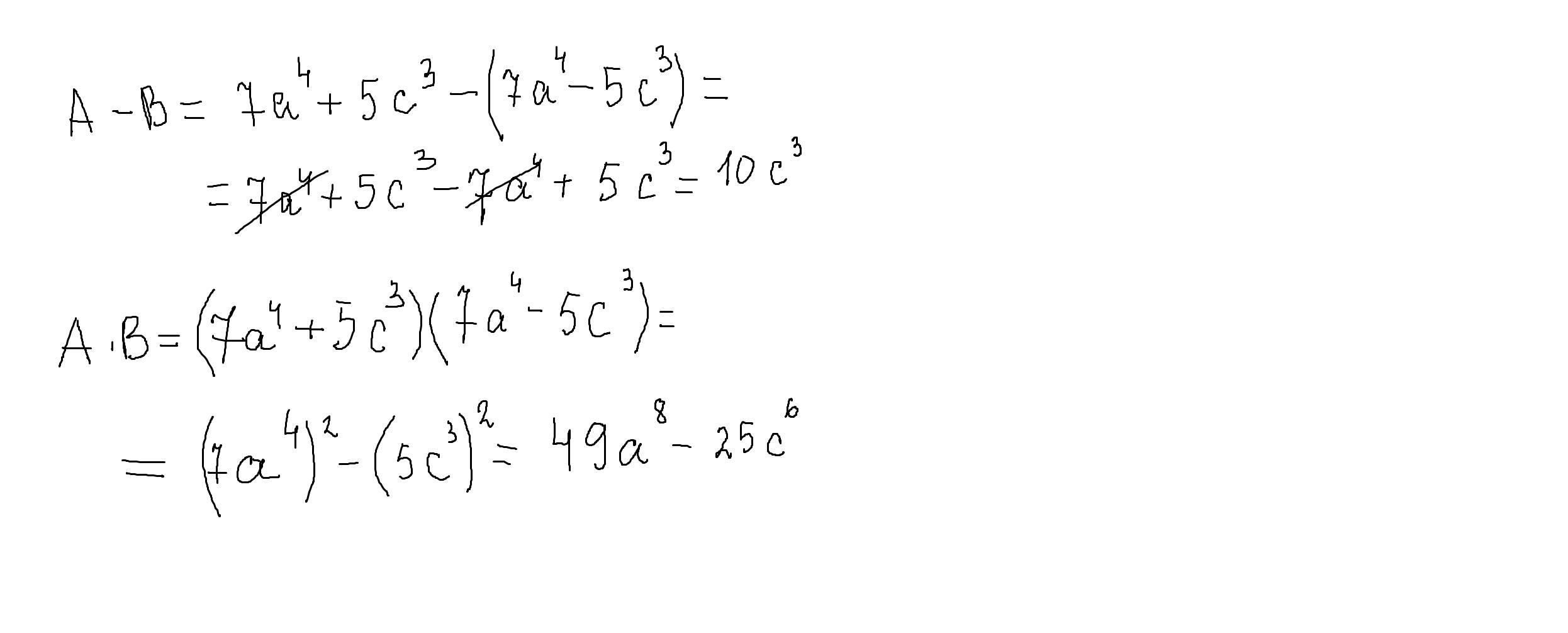 A-B=7a^4+5c^3-(7a^4-5c^3)=7a^4+5c^3-7a^4+5c^3=10c^3 ( ^-знак степени)
