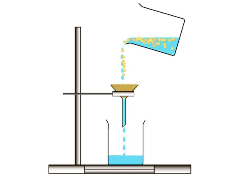 Чтобы разделить смесь, состоящую из поваренной соли и песка, её можно высыпать в сосуд с водой, взболтать и затем эту смесь пропустить через фильтровальную бумагу. Песок остаётся на фильтровальной бумаге, а прозрачный раствор поваренной соли проходит через фильтр: