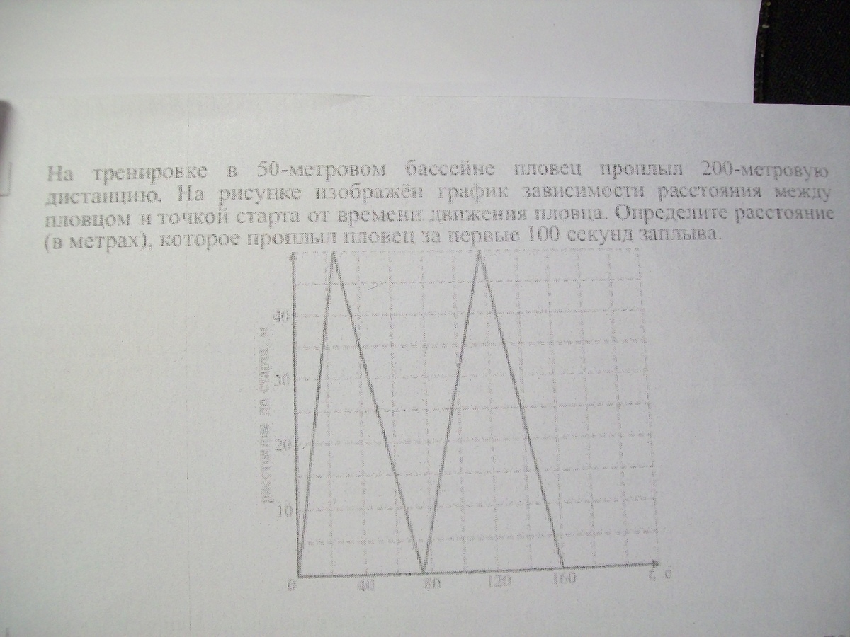 Определите расстояние (в метрах ), которое проплыл пловец за первые 100 секунд заплыва