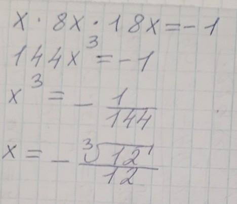 Найди решение данного уравнения x⋅8x⋅18x=−1 , предварительно упростив его левую часть