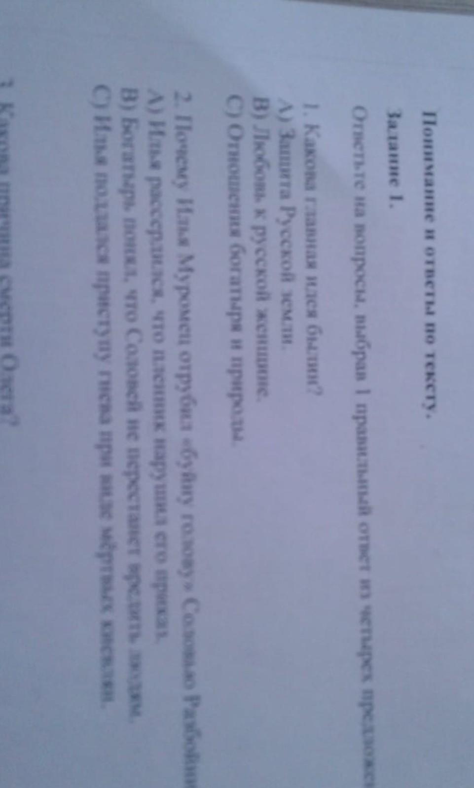 Ответьте на вопросы выбрав 1 правильный ответ из четырех предложенных какова главная идея былин