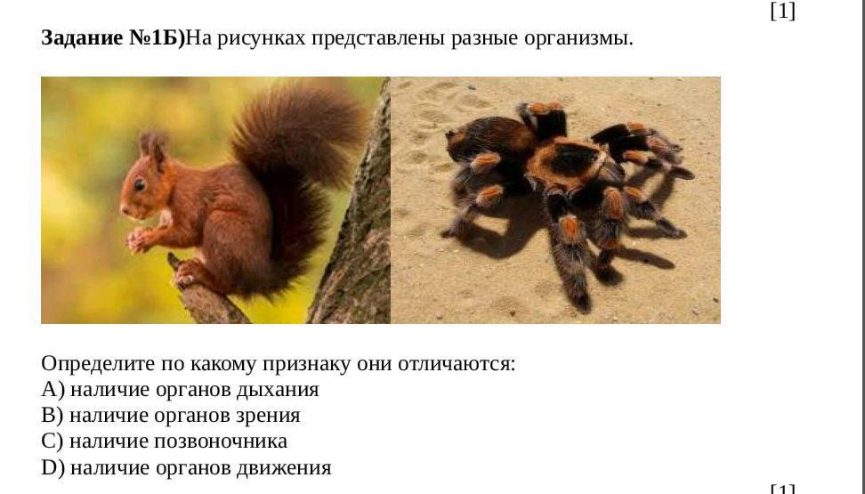 Я считаю, что будет В.Но это не точно...У пауком много глаз, а у белки 2 глаза..., паук больше видит, а белка нет