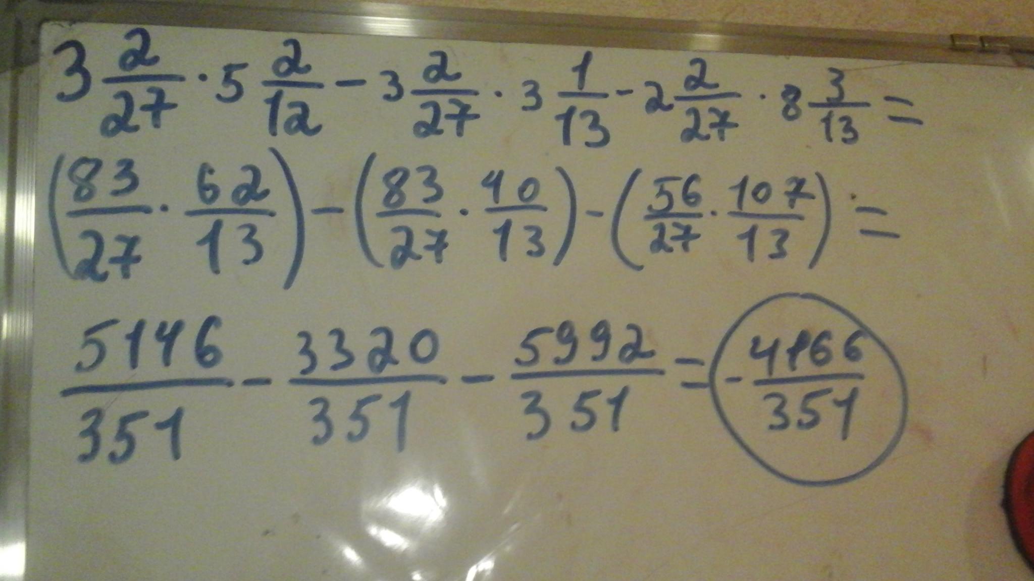 Помогите решить 3 2/27 * 5 2/12 - 3 2/27 * 3 1/13 - 2 2/27 * 8 3/13