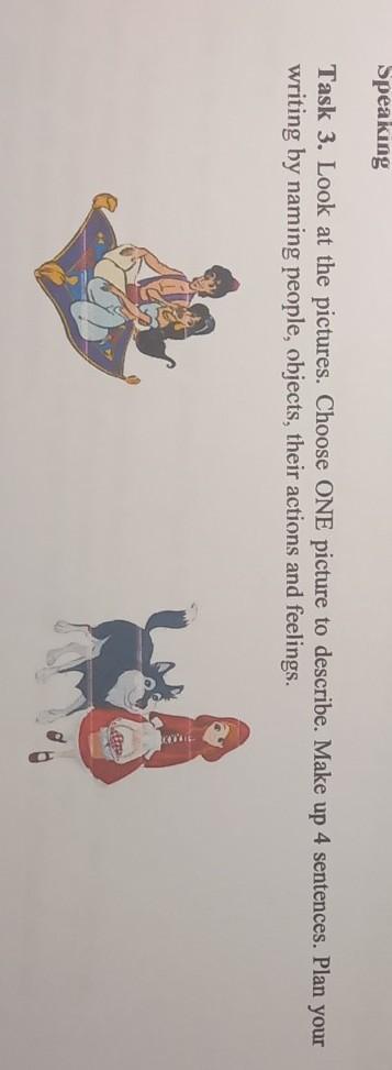 Task 3. Look at the pictures. Choose ONE picture to describe. Make up 4 sentences. Plan your