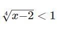 Sqrt^4(x-2)<1 - условие. Решение: sqrt^4(x-2)-1<0(необходимо перенести 1 для возможности решения уравнения) возводим всё в 4ю степень и получаем х-2-1<0 и тут всё просто х<3. Однако, это не всё, возвращаемся обратно к x-2(для области определения) и получается х≥2 Ответ [2;3)