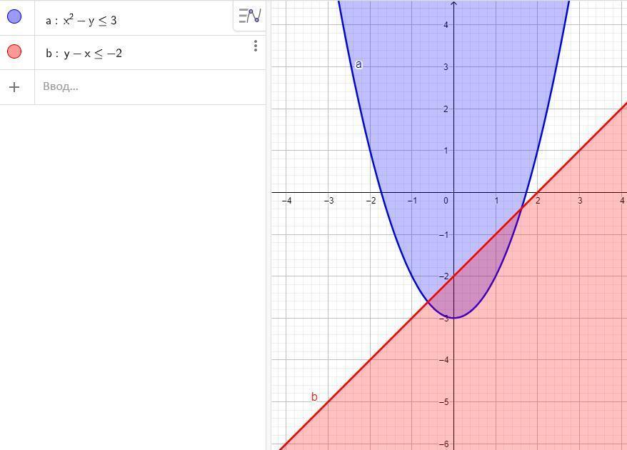. Найдите множество точек координатной плоскости, которое задано системой неравенств: х2 – у ≤ 3, у-х ≤ -2