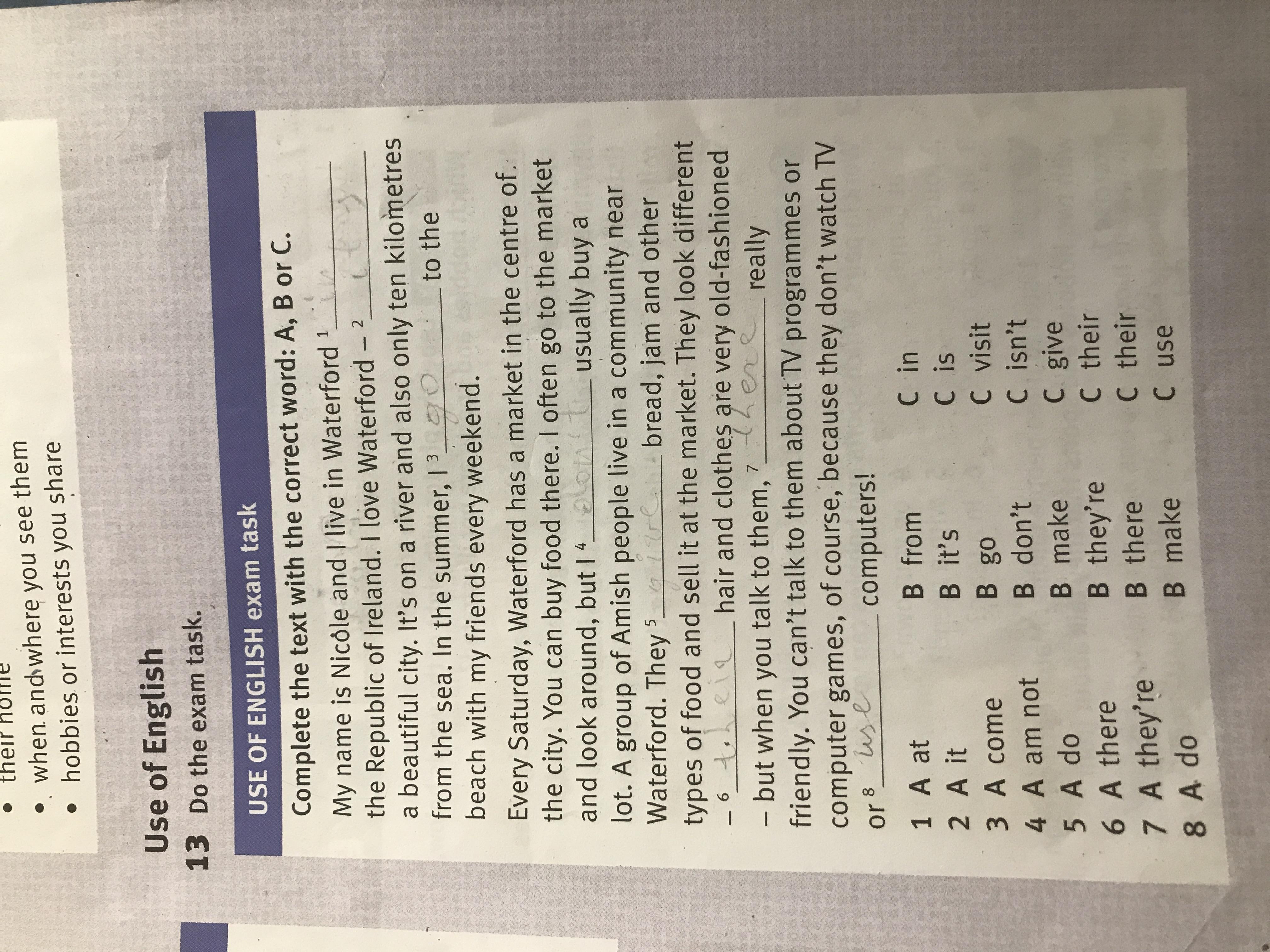 Помогите пожалуйста!Тут даются номера и у этих номеров есть по три варианта ответа,надо выбрать правильный ответ и вставить его в предложение