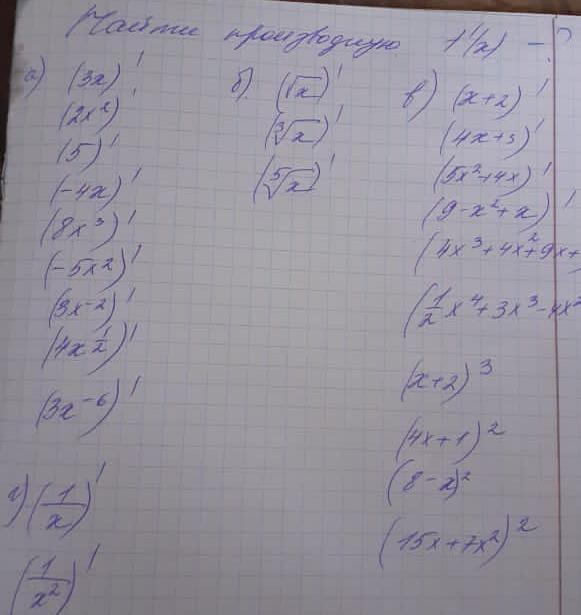 а) 3;4x;0;-4;24x^2;-10x;-6x^-3;2x^-1/2;-18x^-7