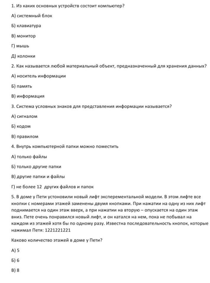 1 системный блок 2 носитель информации 3 кодом 4 другие папки и файлы 5 6