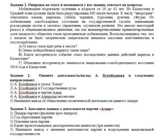 Задание 3. Заполните данные о деятельности партии «Алаш»: