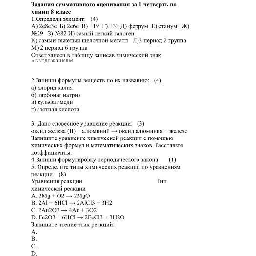 Помогите пожалуйста СОЧ ПО ХИМИИ, Может кто-то уже сделал