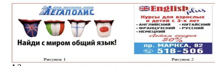 Ответ:1.Язык-мой друг.Языковые курсы.Иностр.школа 2.Англ.Япон.Немец.Француз.