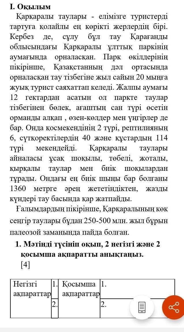 1.Қарағанды обыдысындағы Қарқаралы паркінде орналасқан//Қарқаралы таудары 250-500 млн. жылдар бұрын пайда болған деп есептеледі