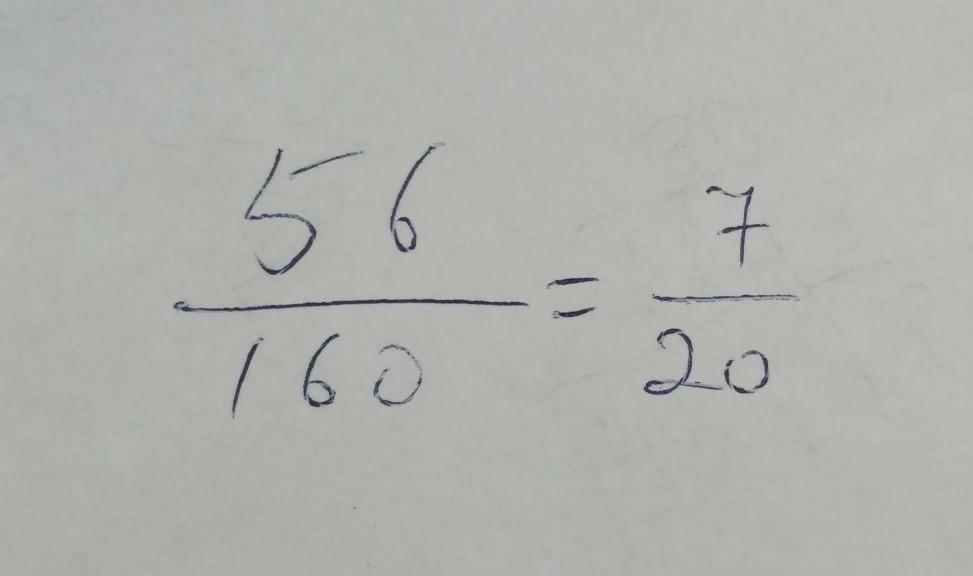 56/160= 56:8/160:8= 7/20
