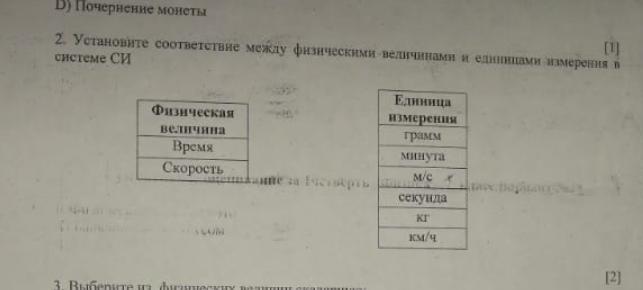 установите соответствие между физическими величинами и единицами измерения в системе СИ