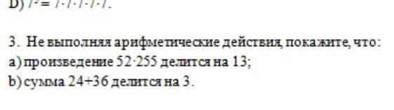 не выполняя арефметические действия покажите что а)произведение 52-255лелится на 13 b) сумма 24+36 делится на 3 пажалуста помогите
