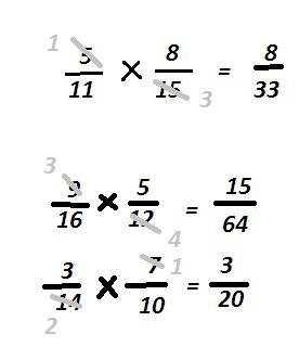 5/11 умножить на 8/15,9/16умножить5/12,3/14умножить7/10