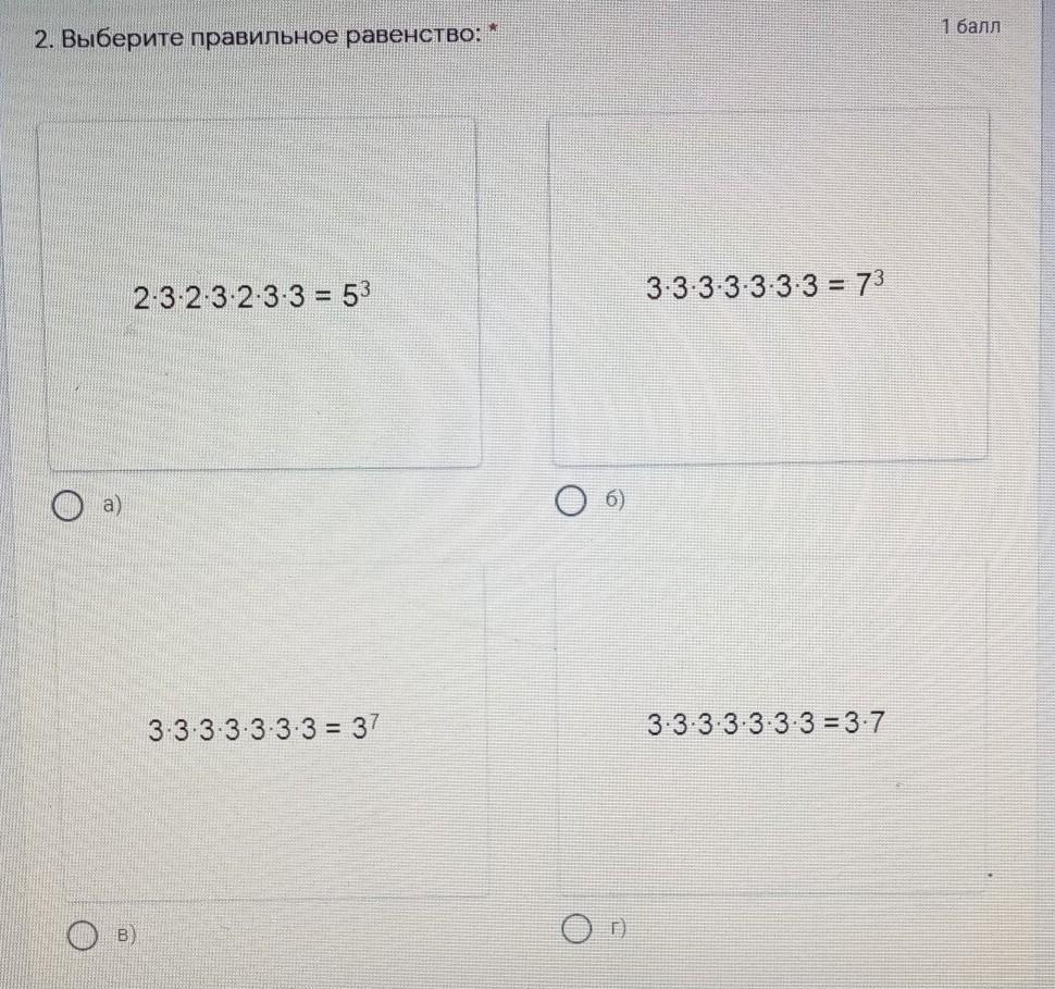 Значит 3·3·3·3·3·3·3=3 в степени 7 верна