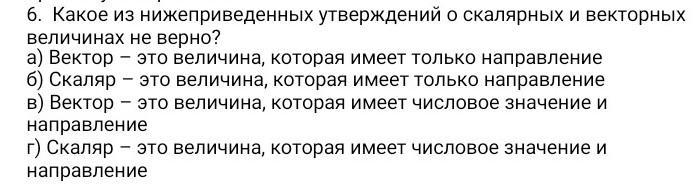 Не правильно: б) Скаляр- это величина которая имеет только направление