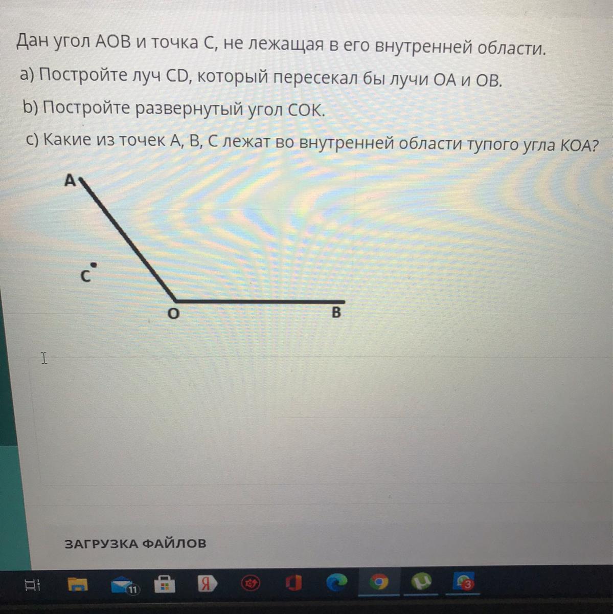 Дан угол АОВ и точка С, не лежащая в его внутренней области.