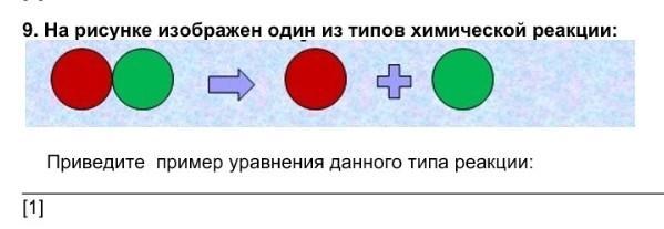 ПОМОГИТЕ ЭТО СОЧ ПОЖАЛУЙСТА (9). На рисунке изображен один из типов химической реакции: Приведите пример уравнения данного типа реакции: