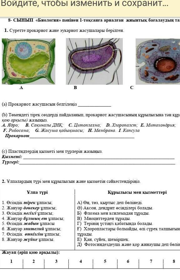 C) Кызметы : эукариот жане прокариот жасушаларында жыпшелы курлымдар цитонка Кызметы аткарады