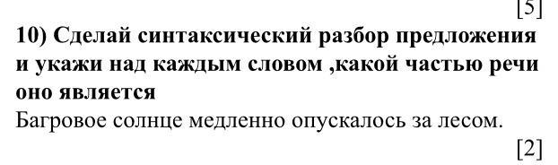 что ? солнце— подлежащее выражено сущ. что делало ? опускалось— сказуемое выражено гл. как ? медленно— обстоятельство выражено сущ. какое ? багровое— определение выражено прил.