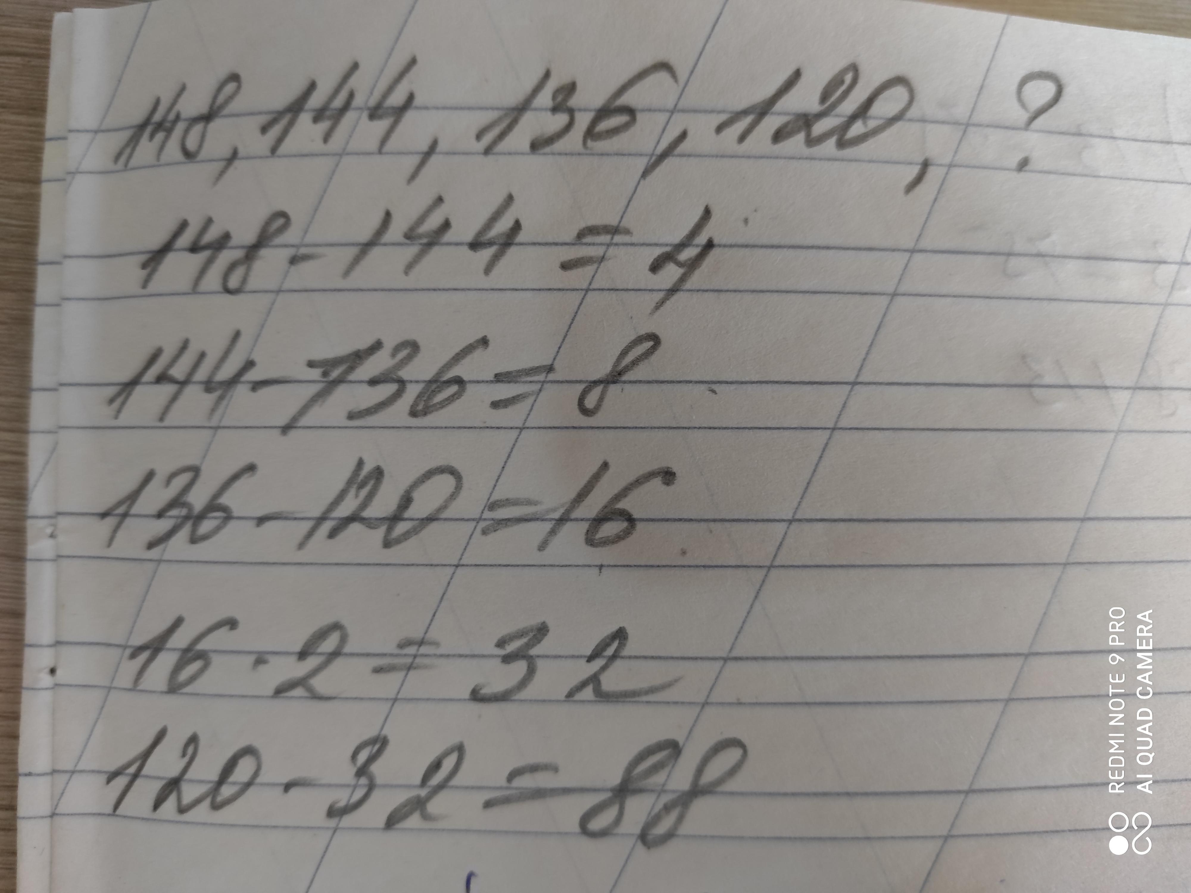 кассир кинотеатра записал количество проданных билетов образует закономерную последовательность:148,144,136,120