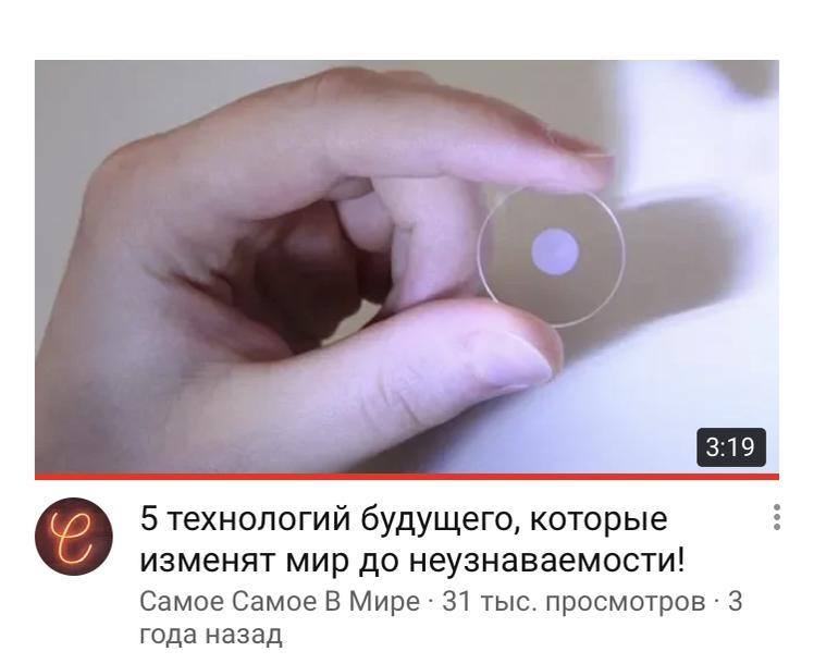 Видео в ютубе называется : 5 технологий будущего которые изменят мир до неузнаваемости !