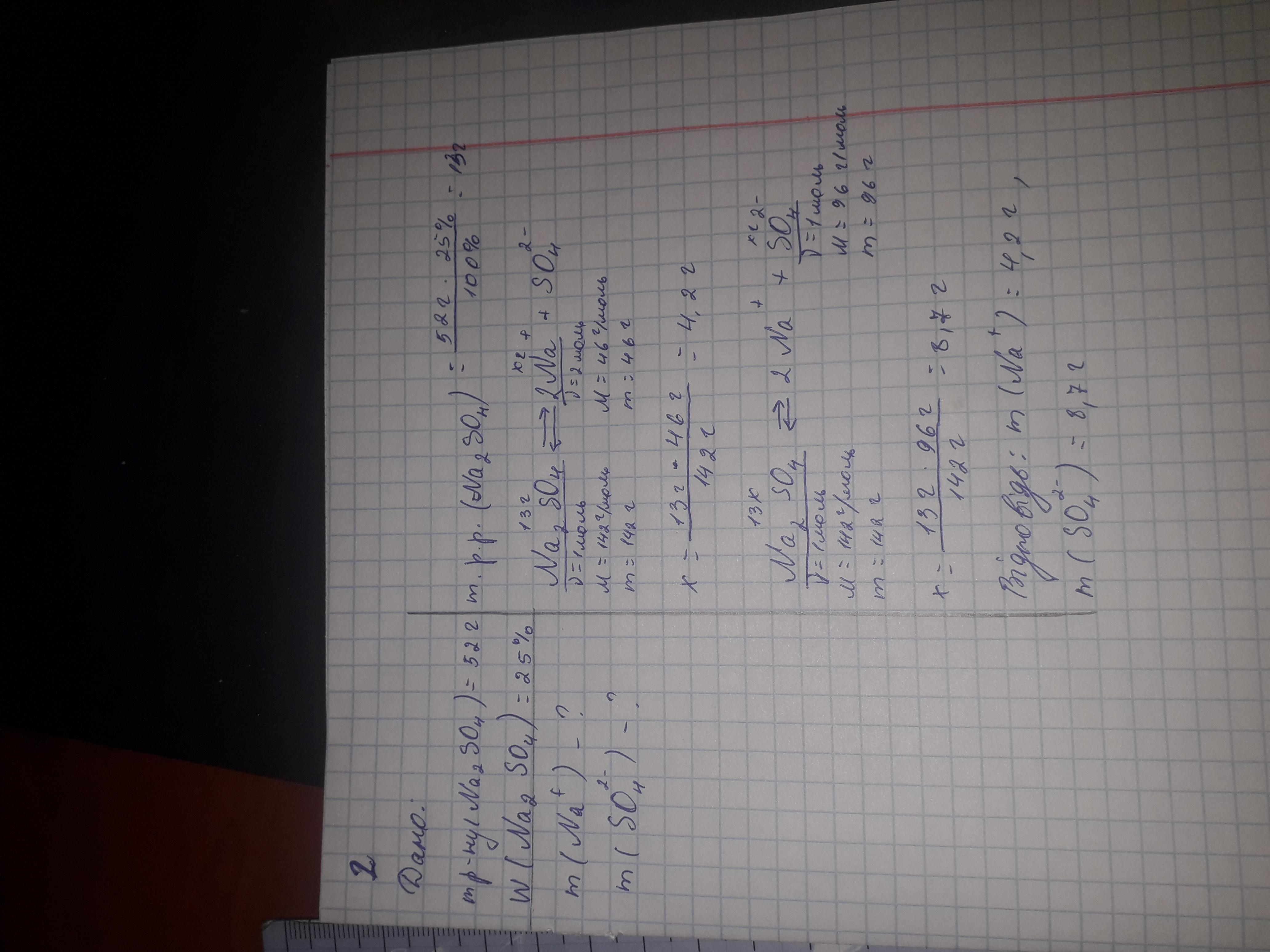 у розчині натрій сульфат масою 52 г масова частка речовини -25% обчисліть масу катіонів і аніонів у цьому розчині
