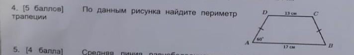 [5баллов] по данным рисунка найдите периметр трапеции. помогите пожалуйста 10б и подпишусь прошууууу