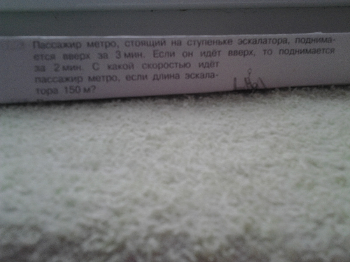 Нам надо найти скорость движения человека, а это скорость когда он идет минус скорость эскалатора (когда он стоит).. т.е V2-V1 , выражаем V1=150/180