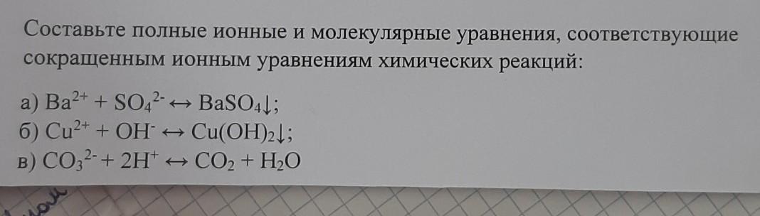 Составьте полные ионные и молекулярные уравнения, соответвествующие сокращенным ионным уравнениям химической реакции: