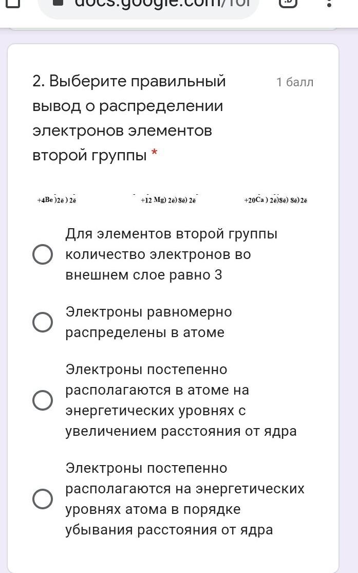 4 электронны постепенно располагаются на энергетических уровнях атома в порядке убывания расстояния от ядра .или 2