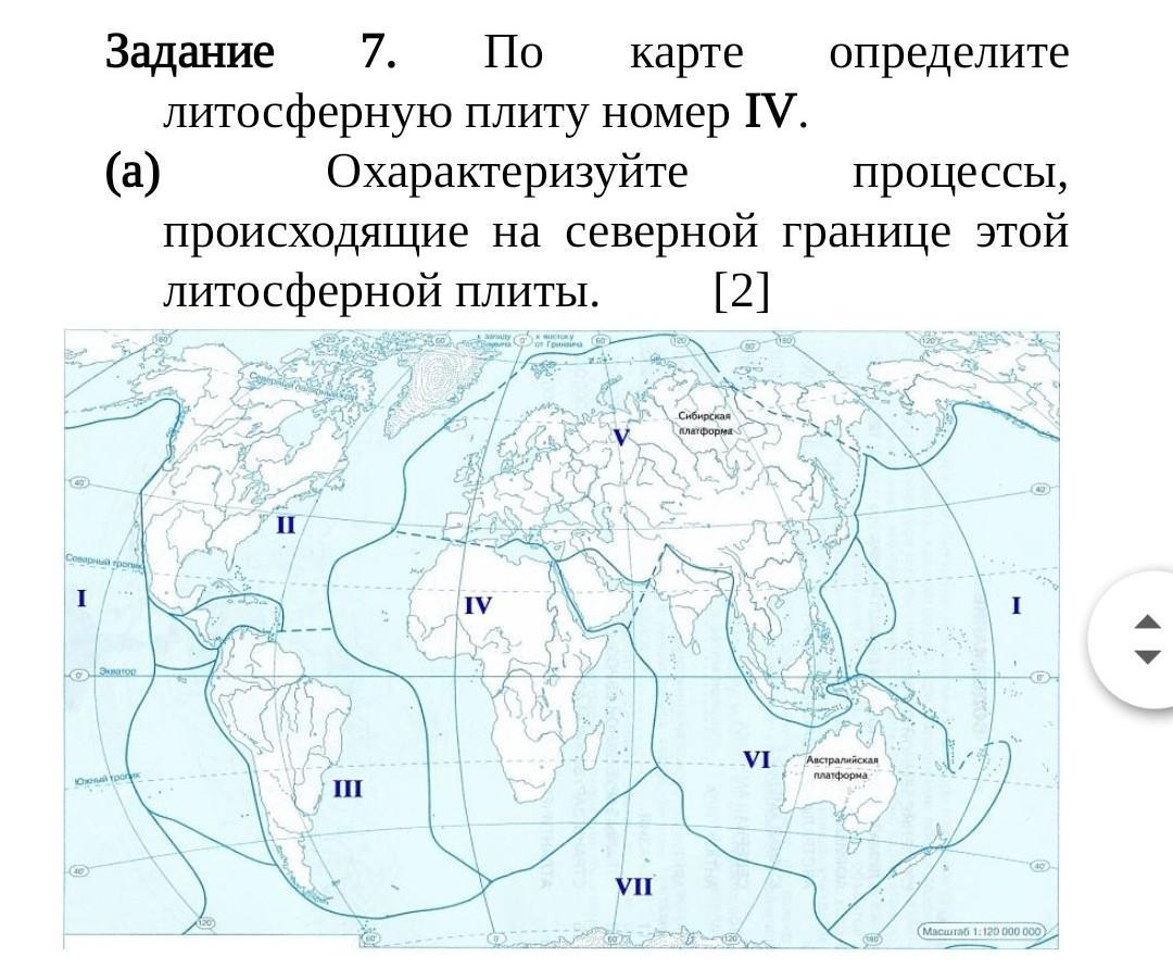 По карте определите литосферную плиту номер IV.
