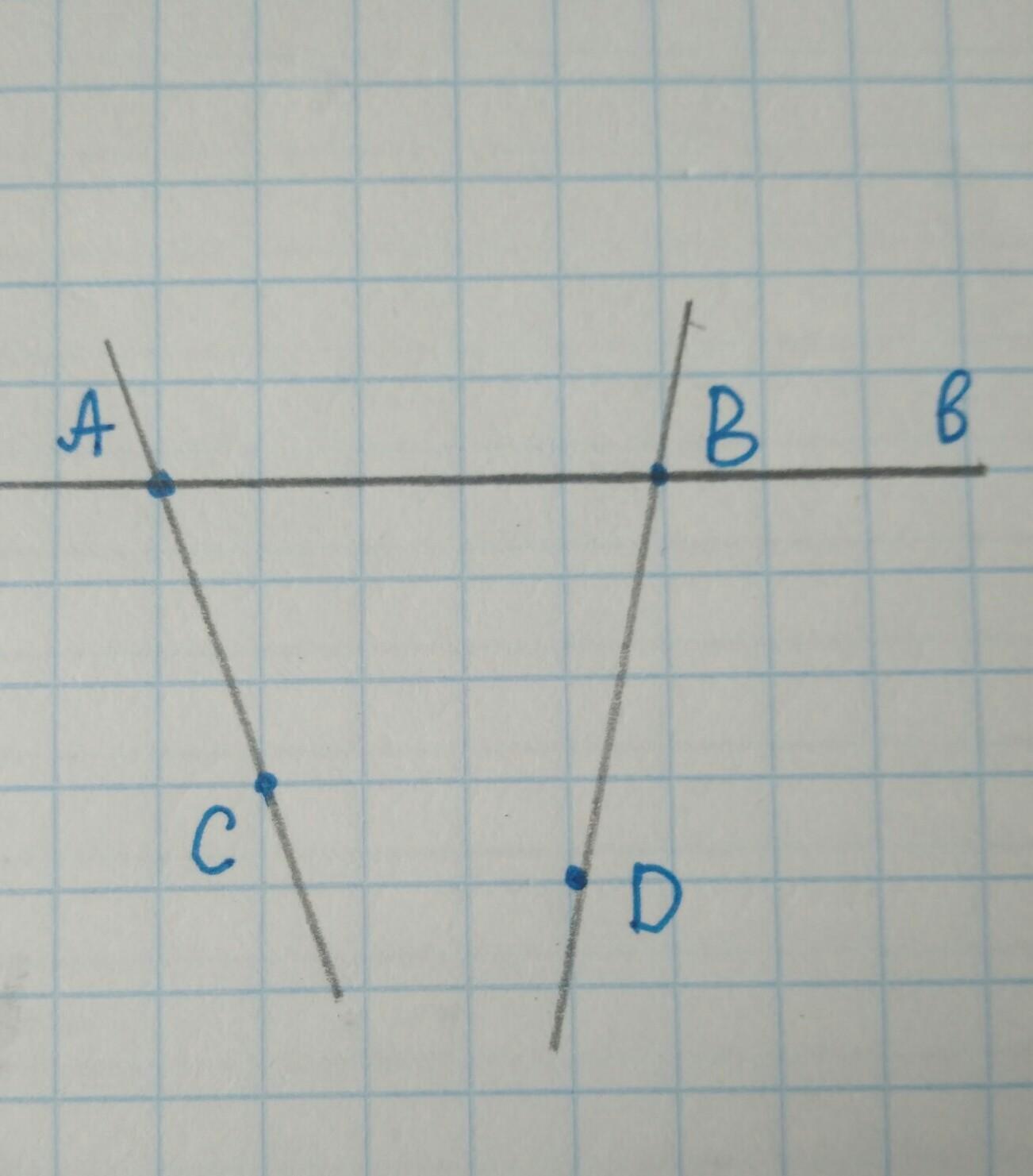 прямой b. Проведите прямые через точки А и С, а также через точки В и D.срочно умоляю пжжжж