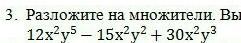 12x²y⁵-15x²y²+30x²y³=3x²y²*(4y³-5+10y).