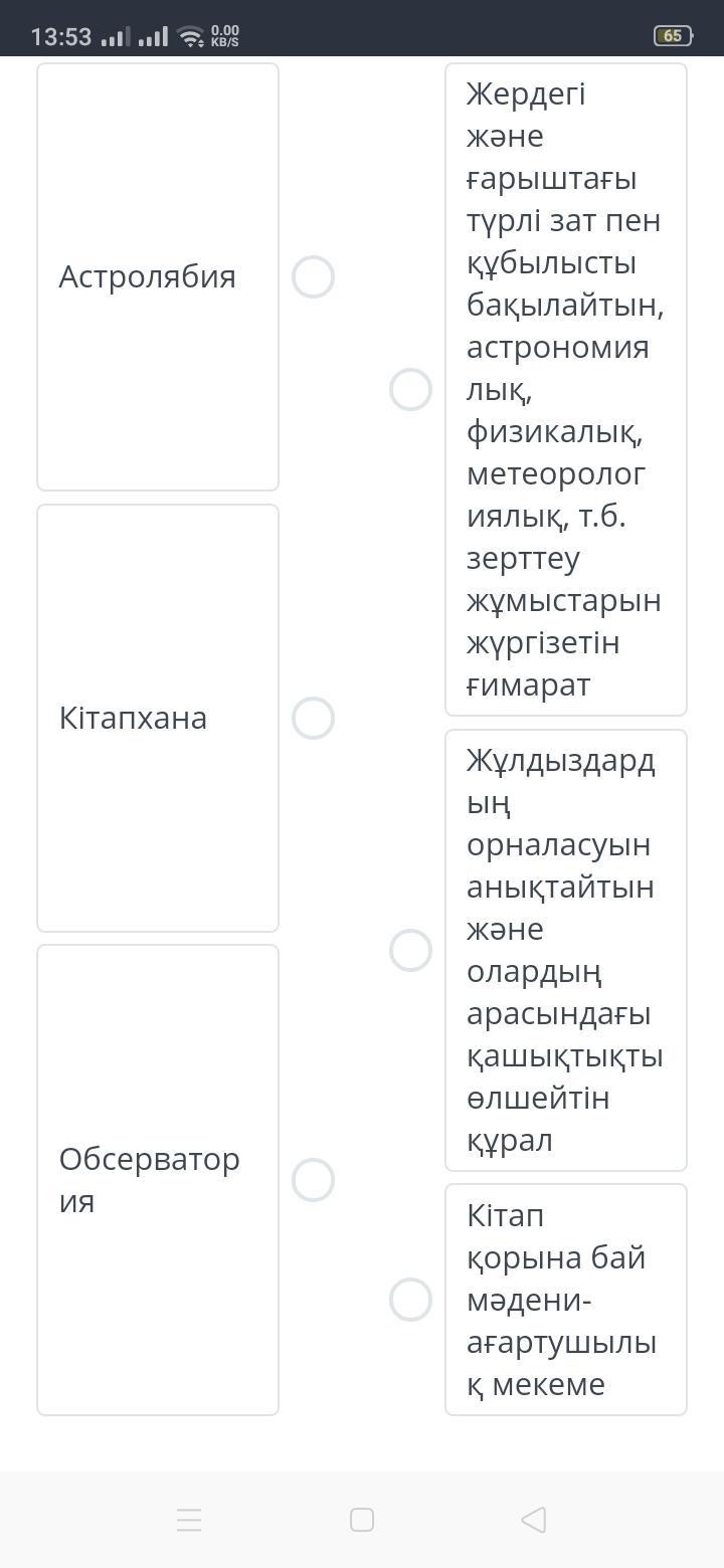 Астролябия - Жердегі және ғарыштағы түрлі зат пен құбылысты бақылайтын, астрономия лық, физикалық, метеоролог иялық, т.б. зерттеу жұмыстарын жүргізетін ғимарат.