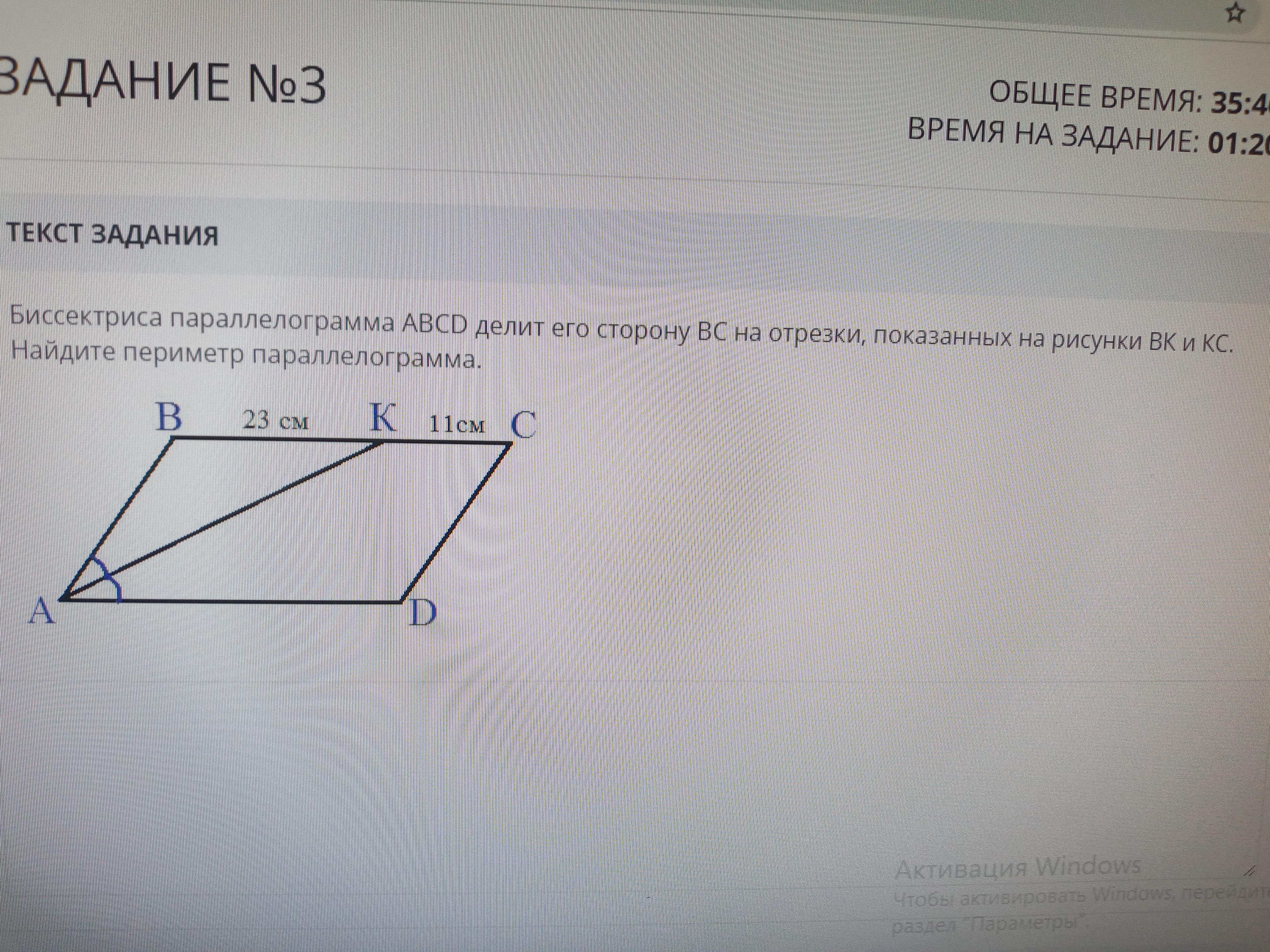 Биссектриса параллелограмма ABCD делит его сторону BC на отрезки показанных на рисунке BK и KC. Найдите периметр параллелограмма. СРОЧНОО!!!