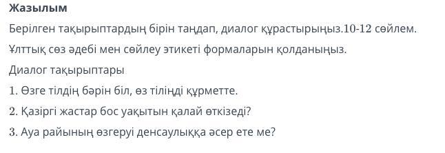 Тақырып: қазіргі жастар бос уақытын қалай өткізеді. С/е, е/с дегендердің орнына адам аттарын қой
