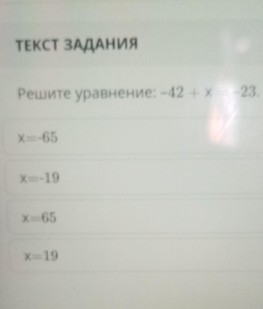 Решите уравнение: -42 +х= -23.
